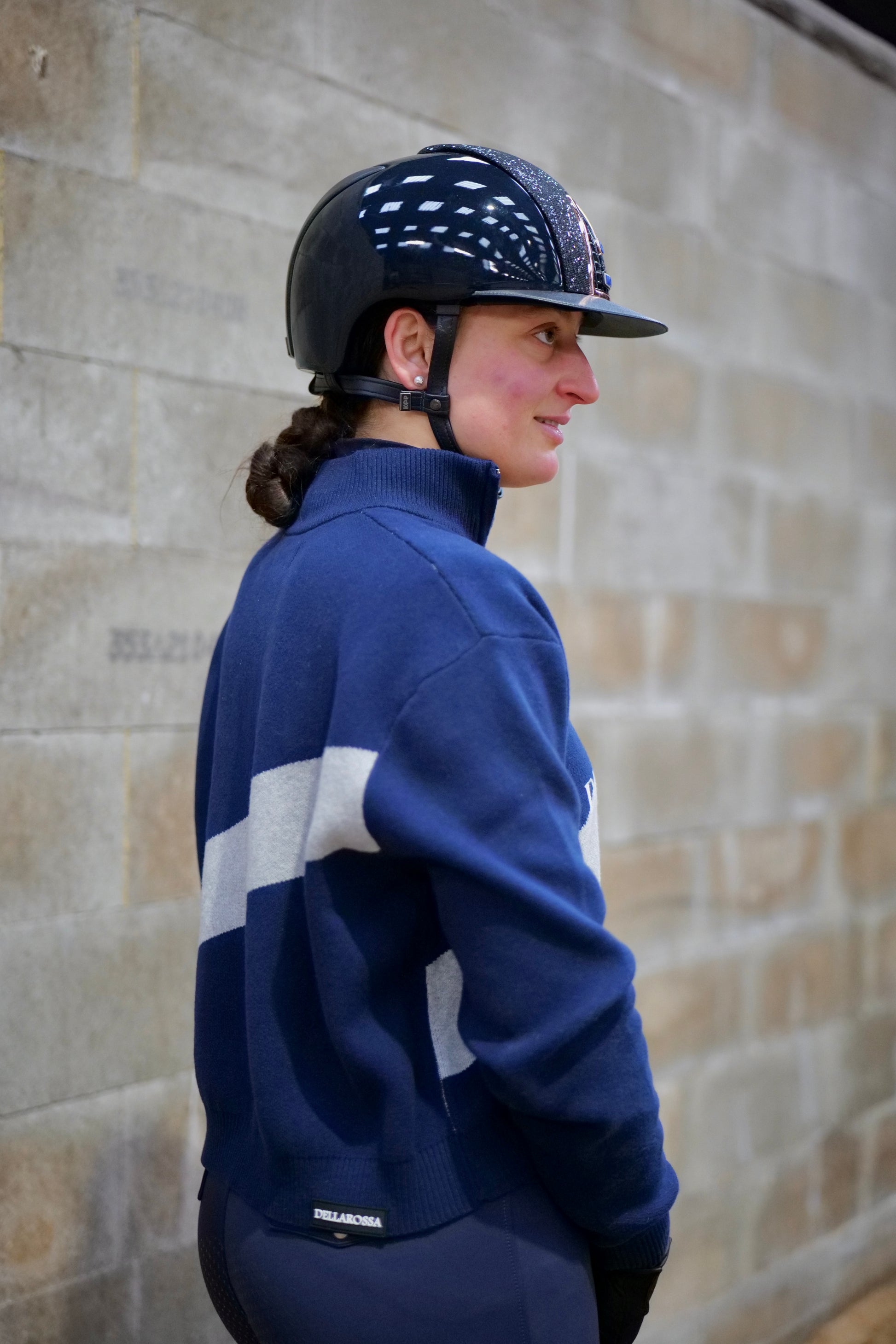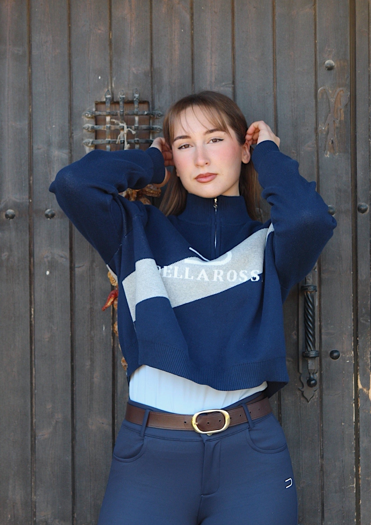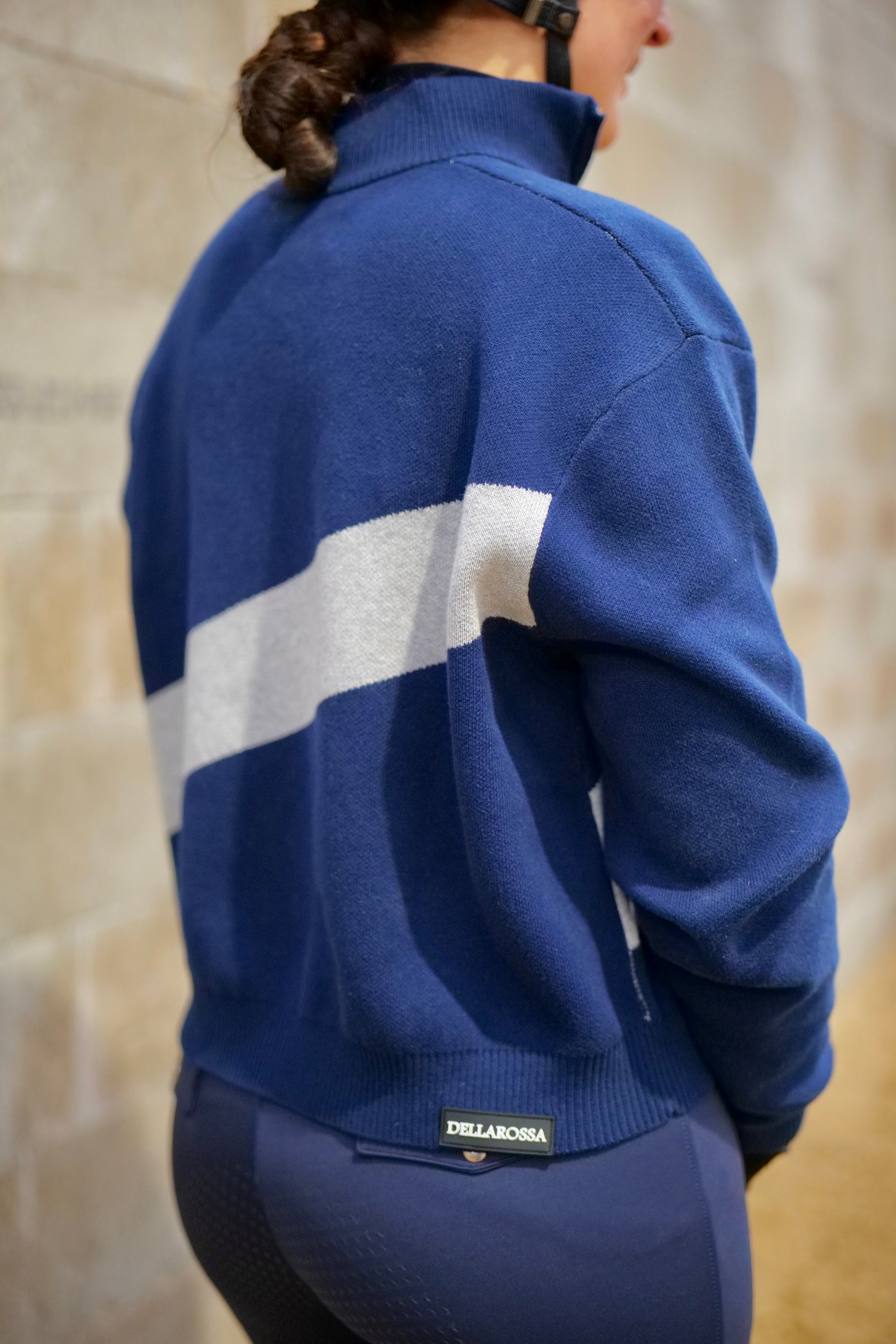 El diseño se completa con un gráfico Dellarossa en contraste, integrado directamente en el tejido, y una etiqueta tejida de la marca en la parte inferior como firma discreta.